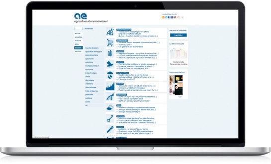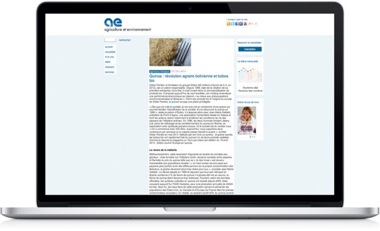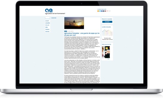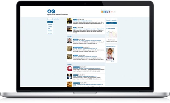 Conception et suivi de réalisation du site internet de a&e, agriculture et environnement, dans le cadre le l’identité globale. Site en ligne depuis 2011.