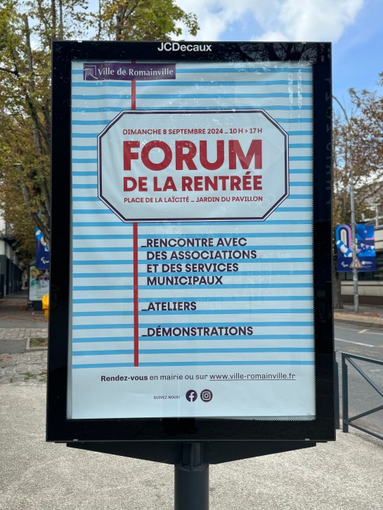 Forum de la rentrée 2024 : conception graphique de l’ensemble des supports de communication de l’évènement : affiches, bâches, posts réseaux sociaux.