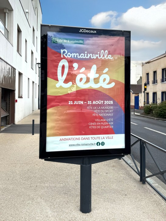 C’est de nouveau l’été à Romainville ! Conception graphique de l’ensemble des supports de communication de l’évènement : affiches, bâches, programme, posts réseaux sociaux.